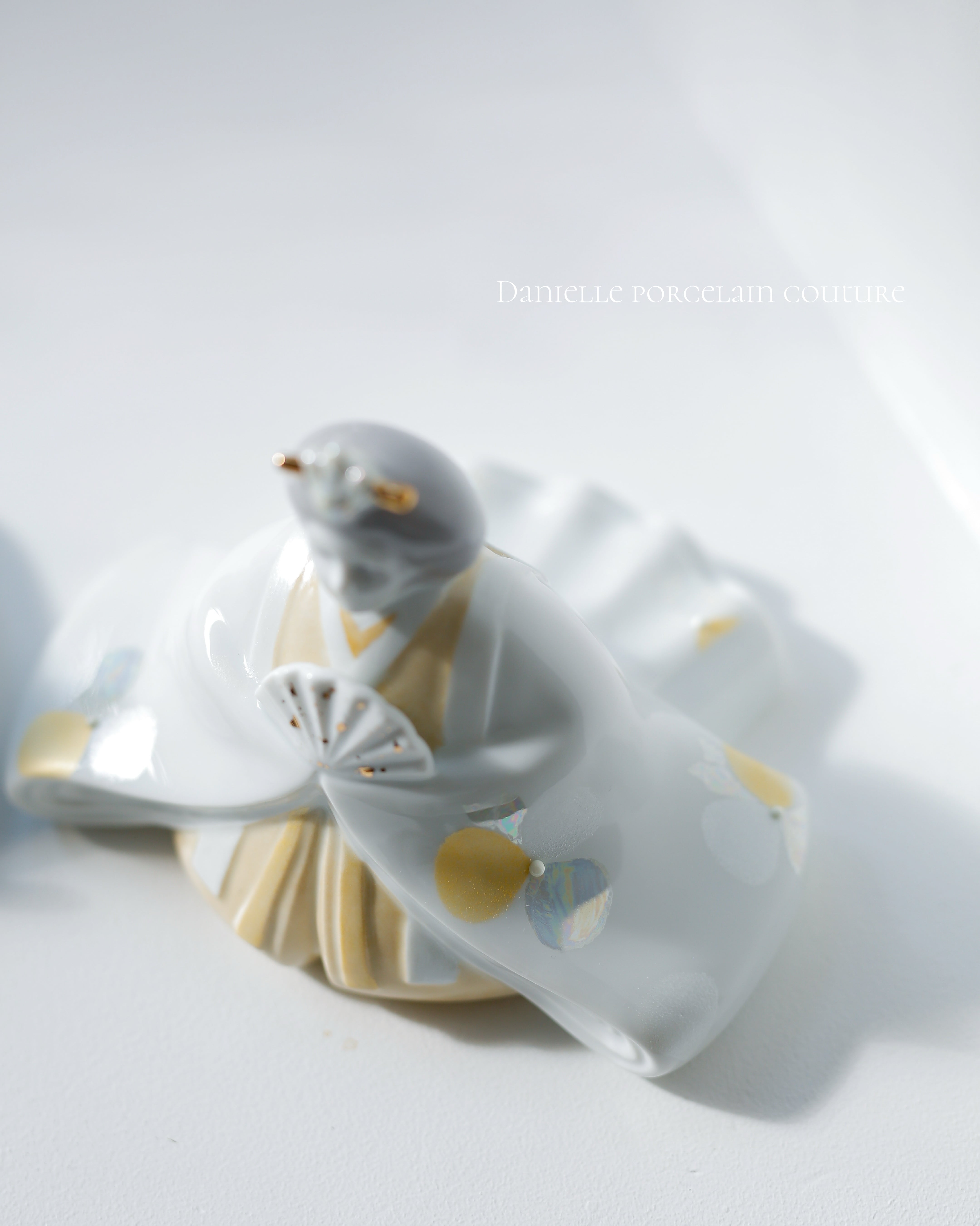 お着物の花びらは、角度によって乱反射するラスターを施しています。